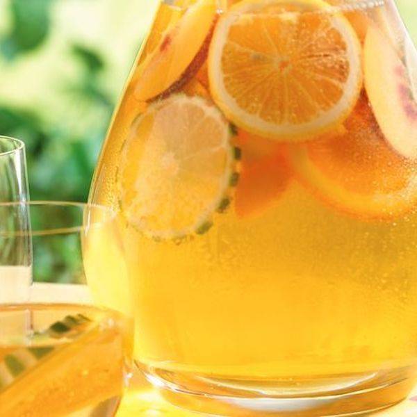 - Если вы хотите получить более-менее современную сангрию, добавьте к вину нарезанное ломтиками яблоко и персики/абрикосы, а в довершении, после 2-3-часовой мацерации, можете плеснуть немного любого газированного напитка прямо перед подачей, чтобы ваша сангрия стала газированной. Кусочки фруктов можно предварительно помять деревянной ложкой или мадлером.