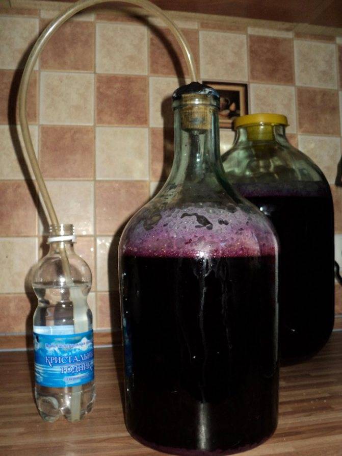 Сусло бродит от 15 до 20 суток. Окончание процесса можно определить так: если медицинская перчатка упала или на поверхности воды перестали появляться пузырьки, то идет брожение. После этого напиток станет светлым и чистым, а весь осадок опустится на дно. Для того чтобы вино получило насыщенный оттенок, его нужно выдержать.