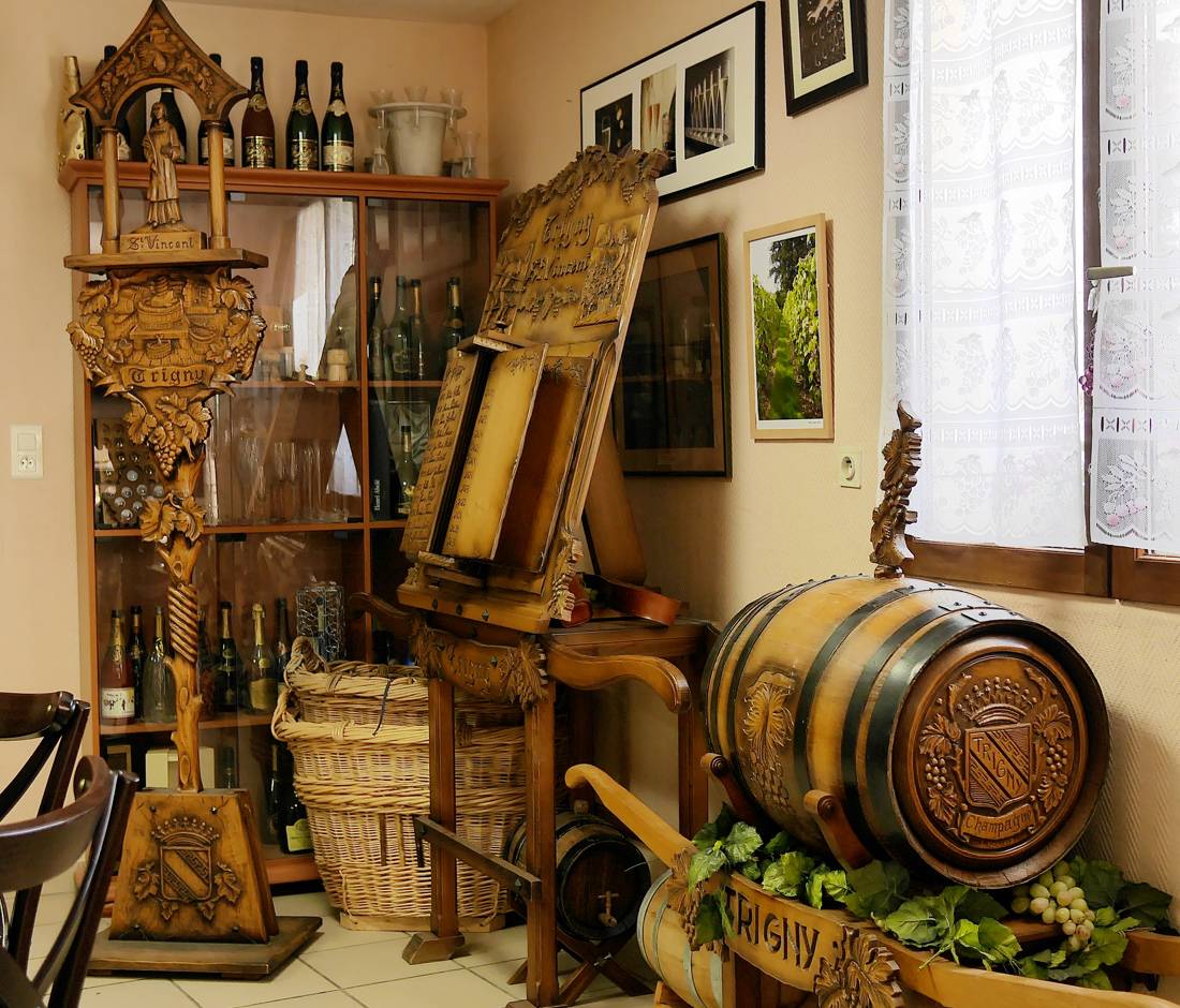 В приемной/дегустационной Ги Блен имеет импровизированный алтарь, где на почетном месте в центре стоит скульптура родоначальника шампанского — Пьера Периньона.