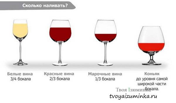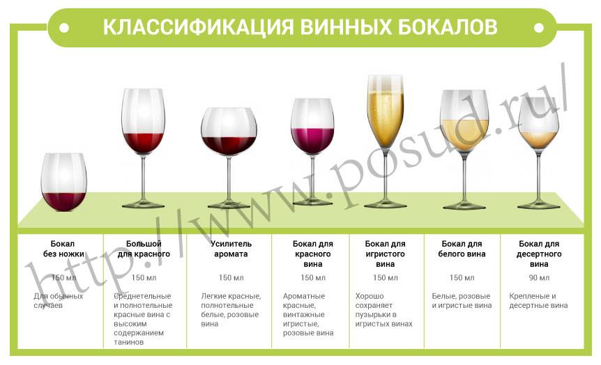 Рассмотрим в каких фужерах подают разные классификации вин:
