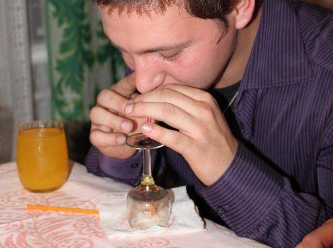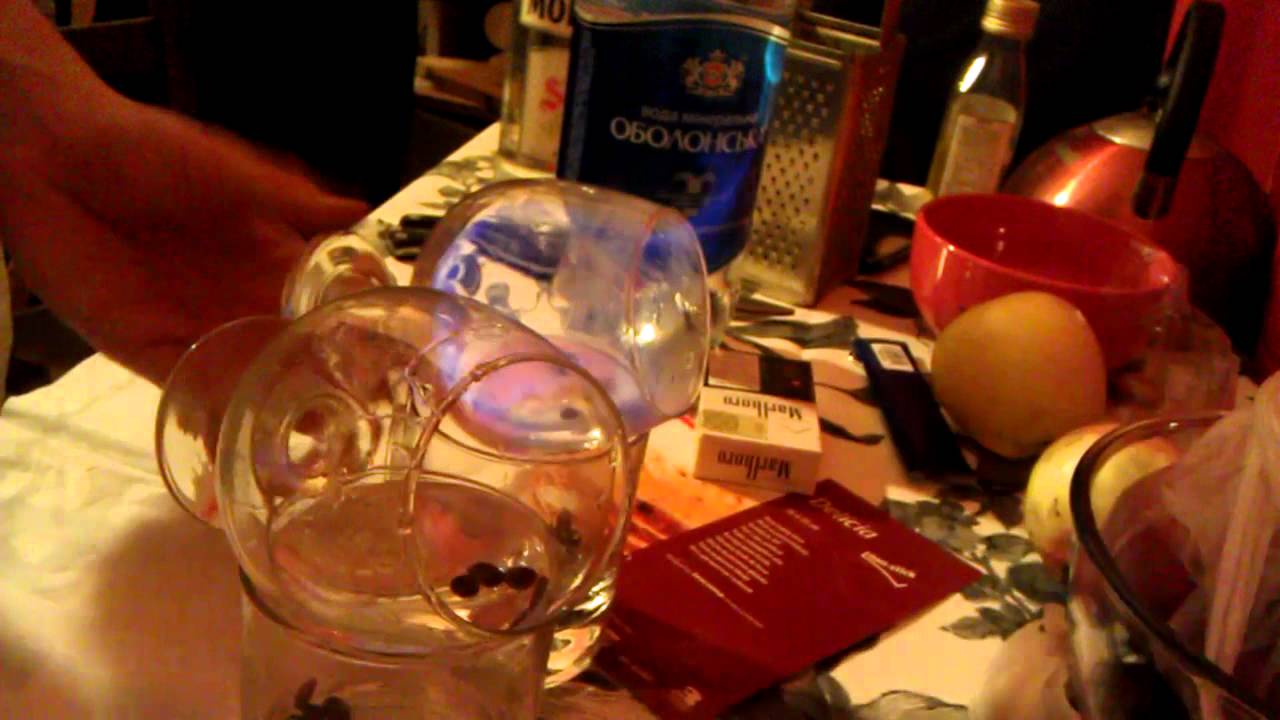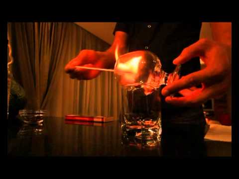 Технология словно создана для любителей экспериментов, она не проста, но интересна. Итак, в бокал №1 бросают зерна кофе и вливают рюмку (50 граммов) самбуки. В центр салфетки просовывают соломинку для коктейля. Подготовка закончилась, и теперь мы зажигаем ликер. После 3-5 секунд горения алкоголь переливают в бокал №2, а бокал №1 помещается сверху, как крышка. Именно в нем и соберутся пары для последующего вдыхания.