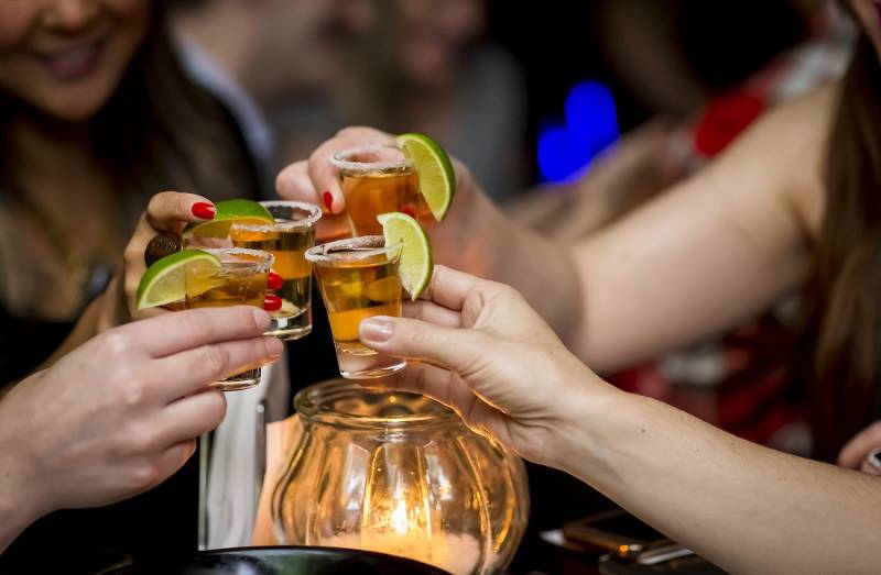 В большой компании дешевую текилу можно пить немного по-другому. Развлечение называется Banderita (Бандерита – от исп. «флажок»). Налей в первую стопку сангриту, во вторую – текилу, в третью – сок лайма. Напитки в рюмках по цвету совпадают с цветами мексиканского флага – отсюда и название. Пей по следующей схеме: сангрита, текила, сок лайма/лимона. Готово, ты бедный, но пьяный и веселый гринго.