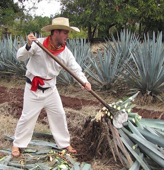 Далее на авансцену выступают химадоры – сборщики агавы, которые вручную, с помощью специальной лопаты коа (весит, немного – всего каких-то 10 кг), срубают плод и тащат его на тракторный прицеп.