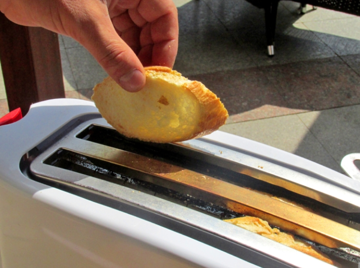 Из багета делаем тосты.