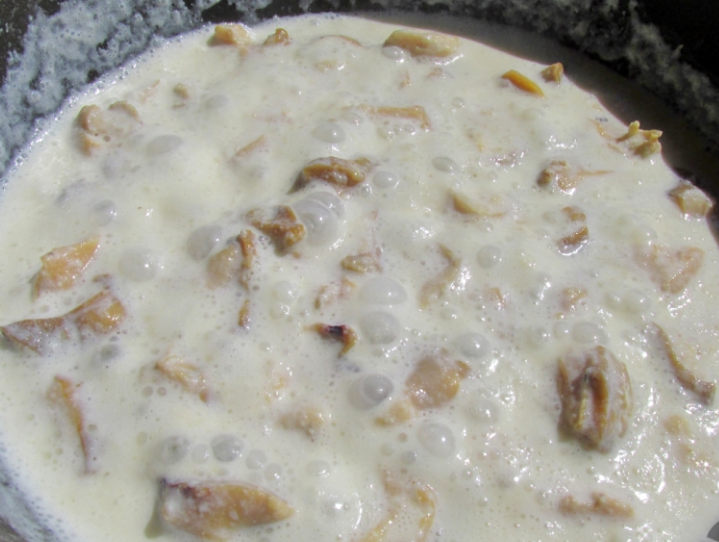 Вливаем сливки и молоко.