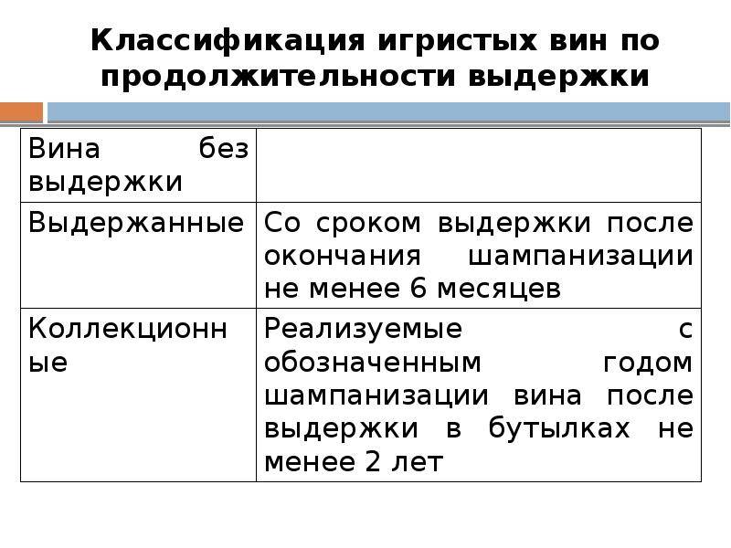 Исходя из этого, напитки данного типа делятся на выдержанные и невыдержанные: