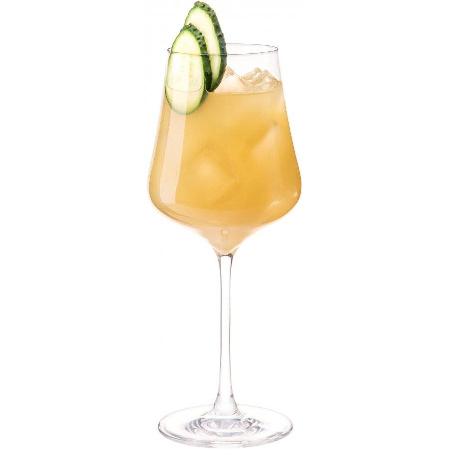белого столового вина. В зависимости от того, какой крепости должен получиться напиток на выходе, пропорции можно менять. Для более крепкого напитка можно увеличить количество джина и ликёра, для уменьшения градуса можно использовать больше сока или льда.