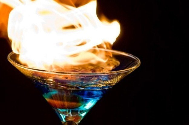 - Пока пламя горит, быстро, чтобы трубочка не оплавилась, выпить все до дна.