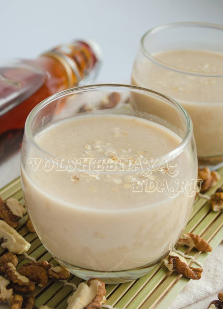 В состав коктейля входят ингредиенты, которые отлично гармонируют с вкусом грецкого ореха: банан, овсяные хлопья, мед и экстракт ванили. Банан зарядит энергией и поможет мозгу быстрее включиться в работу, овсяные хлопья дадут необходимую клетчатку и много сил, мед добавит полезных элементов, а ваниль сделает все очень ароматным. Что касается самого орехового молока, то оно усилит и оптимизирует все вышеперечисленное.