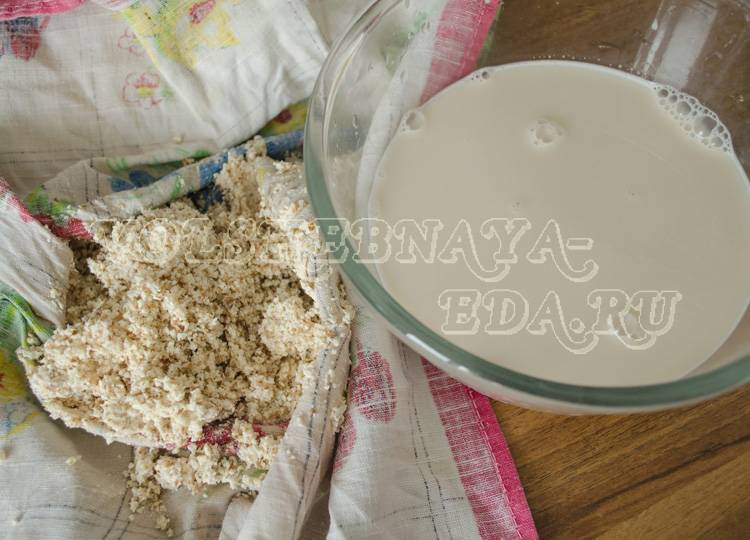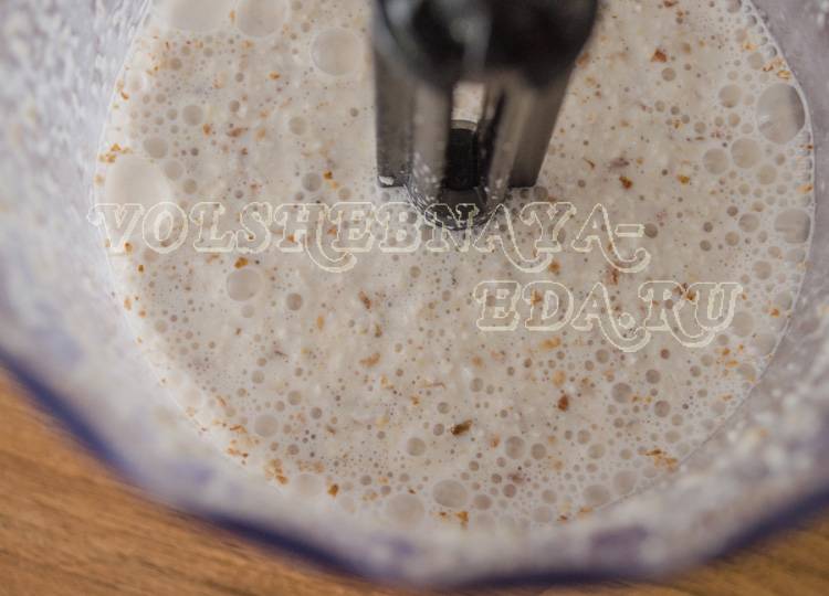 Затем добавьте оставшуюся воду и еще раз все измельчите. Готовый ореховый «смузи» процедите через плотное чистое полотно или марлю, сложенную с несколько слоев.