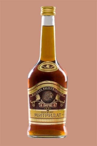 Mitridat, 7 stars (40%). Коньяк цвета тёмного янтаря с пряным корично-сливовым ароматом. Сбалансированный вкус с виноградно-шоколадными оттенками и длительным миндальным послевкусием. Рекомендован барменами и рестораторами в качестве аперитива и дижестива. Отлично сочетается с фруктами, шоколадом, кофе. Иногда подают к сырам и холодным мясным закускам.