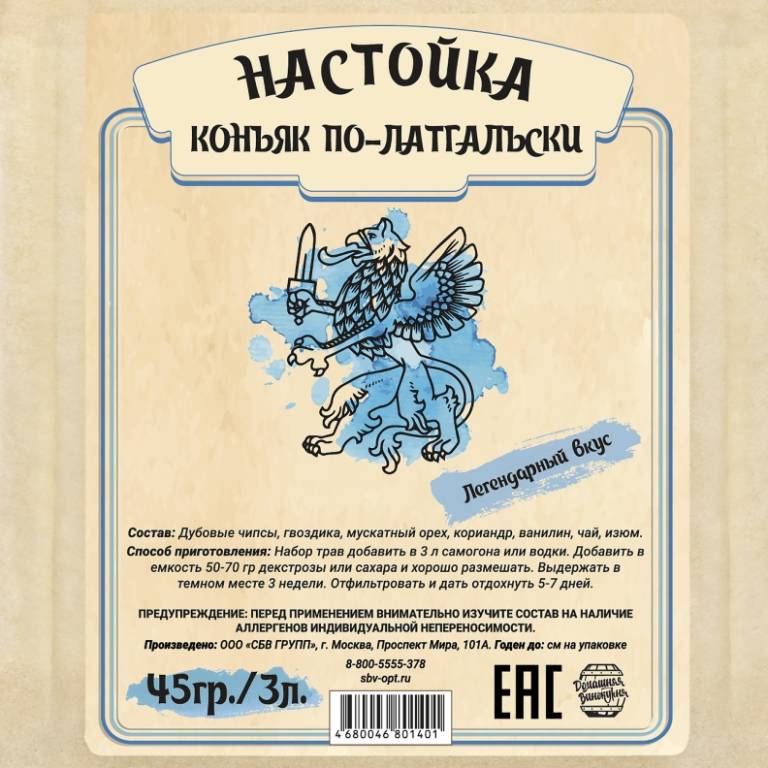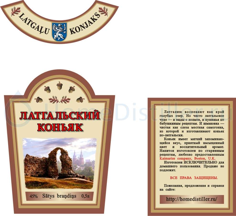 На всякий случай напомню, что согласно международному праву «коньяком» может называться только выдержанный в бочках не менее 2-х лет виноградный дистиллят, произведенный во французском регионе Шаранта по строго определённой технологии. Дистилляты на основе виноградного сока из других стран именуются «бренди». Латгальский коньяк не попадает ни в первую, ни во вторую категорию.