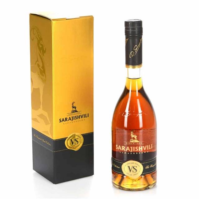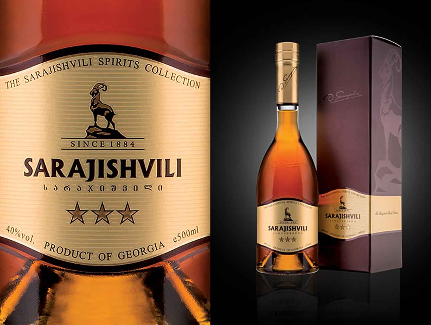 «Sarajishvili» — коньяк премиум класса, выпускаемый старейшим алкогольным предприятием Грузии с конца XIX века. Впервые в продаже данный напиток появился в 1887 году. Назван он был в честь Сараджишвили Давида Захарьевича, основавшего в Российской Империи сразу несколько коньячных заводов. Современный коньяк «Sarajishvili» сохранил в себе индивидуальный характер и аутентичность, при этом значительно повысив качество.