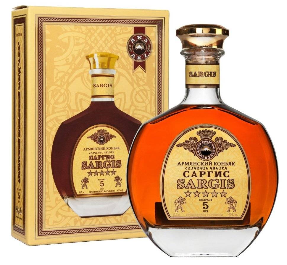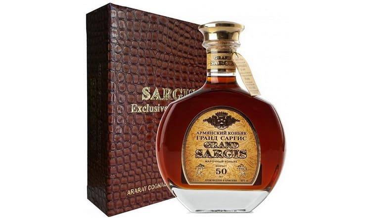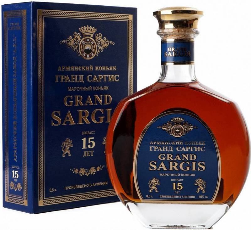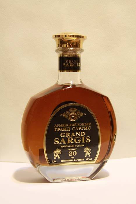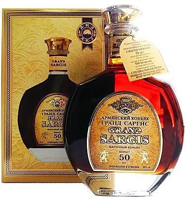 • «САРГИС» (3,4,5 лет), «ГРАНД САРГИС» марочный (6,7,8,10 лет), «ГРАНД САРГИС» премиум (15, 20,25,30,40,50 лет) — производства Араратский коньячный ;