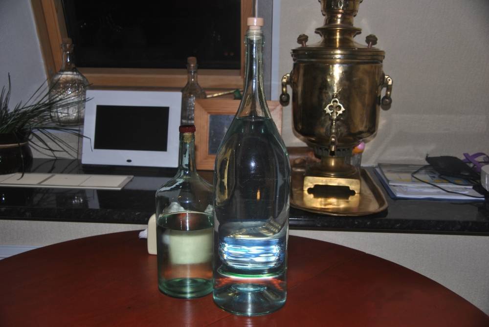 Домашний самогон очень крепкий, поэтому его обязательно разводят водой.