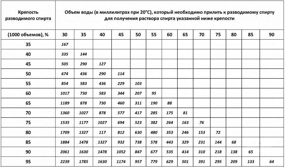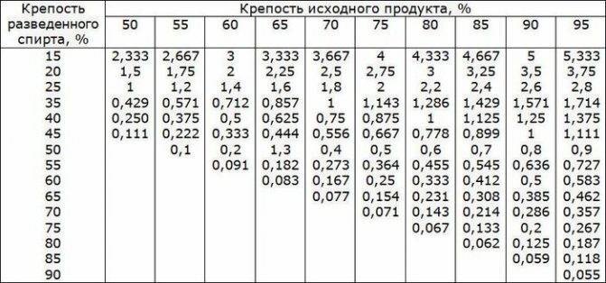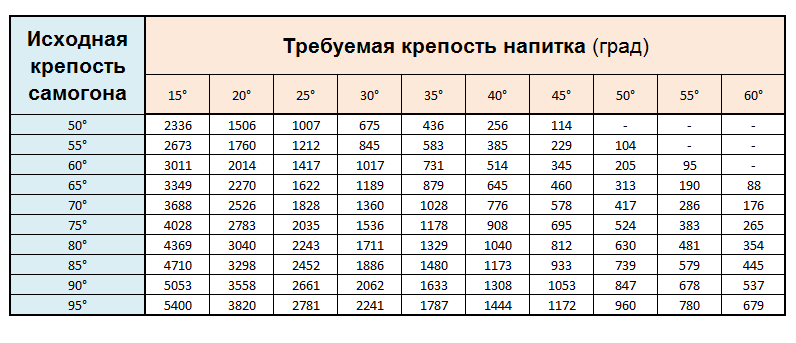При разбавлении самогон осторожно вливают в прохладную воду, а не наоборот. Для точного высчитывания пропорций поможет таблица Фертмана, домашняя формула или же онлайн-калькулятор, предоставленный на нескольких Интернет-ресурсах