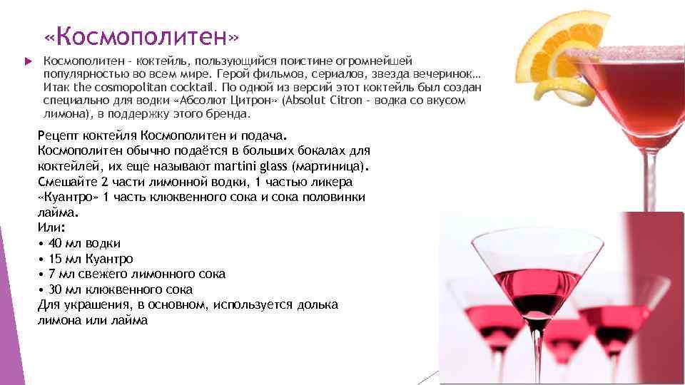 Прежде чем приготовить по рецепту коктейль космополитен, стоит узнать о других его вариантах, которые не менее популярны.