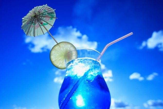 Синий — обычный ликер заменяется на «Блю Кюрасао», тогда мы получим напиток яркого сине-голубого цвета.
