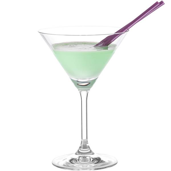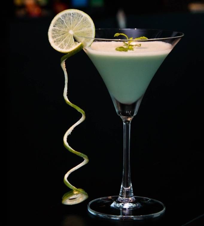 - Подача осуществляется в специальных коктейльных бокалах для мартини, напоминающих опрокинутый конус на длинной тоненькой ножке;