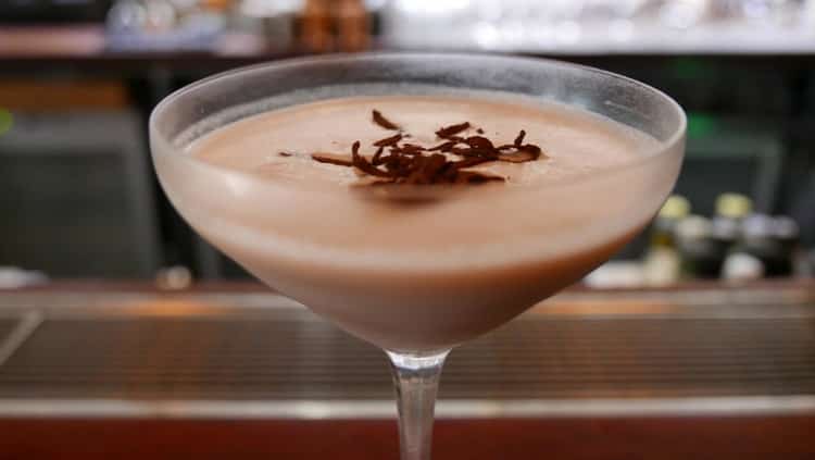Все ингредиенты помещаем в шейкер и слегка взбалтываем, чтобы все перемешалось. Далее наливаем получившееся в бокал. В качестве украшения чаще всего используют тертый молочный или темный шоколад, а так же веточку мяты.