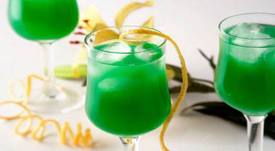 - Для получения оригинального зеленого цвета используйте мятный ликер с ярким изумрудным оттенком и прозрачный бесцветный ликер какао со вкусом белого шоколада. Лучший вариант – продукция фирмы Bols или De Kuyper;