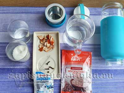 Нужно смешать все ингредиенты кроме сахара гвоздики и красителя, поставить содержимое в прохладное место, примерно на три недели, после чего добавить остальные ингредиенты, и оставить на сутки. Затем смесь процеживают на несколько раз и фильтруют. Напиток готов к употреблению.