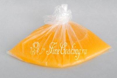 Так как цитрусовый сок нам не понадобится как минимум неделю, советую перелить его в новый пакет, завязать и заморозить. В холодильнике так долго свежевыжатый сок лично я не хранила бы.