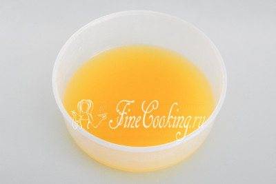 - Перемешиваем ингредиенты и вливаем свежевыжатый фруктовый сок.