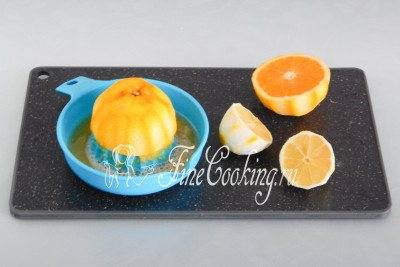 Из апельсина и пары лимонов, которые остались без верхнего слоя, любым удобным способом нужно добыть сок.