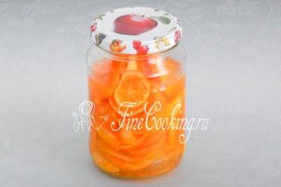 Герметично закручиваем винтовой крышкой или закрываем капроновой. Ставим банку в темное сухое место (в кухонный шкаф, к примеру) на 7-10 дней. Каждый день нужно вспоминать о будущем цитрусовом ликере и трясти банку, чтобы цедра лучше отдавала свой аромат, а мандарины – сок.