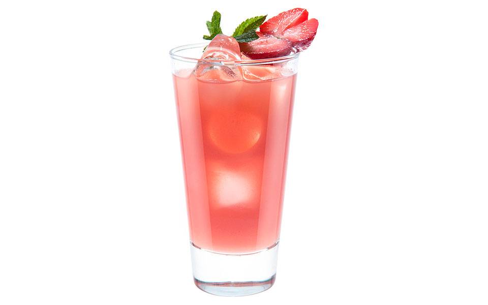 - В высокий стакан бросить лед и перелить содержимое шейкера.