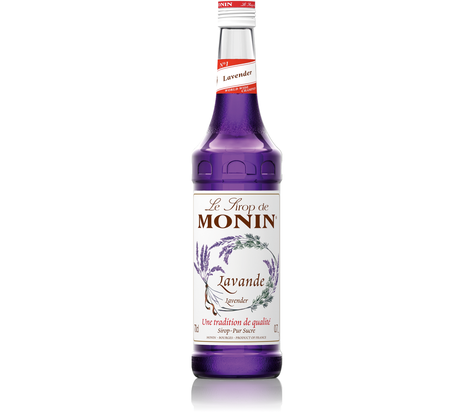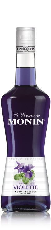Monin, Creme de Violette, 18% – ликер с насыщенным фиолетовым цветом и интересным кисловатым вкусом с нотками карамели. В запахе улавливается аромат фиалковых лепестков.