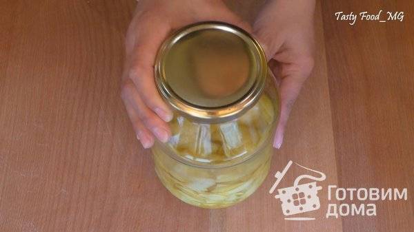 долить домашний самогон, крепостью не менее 50°, в банку по плечики;
