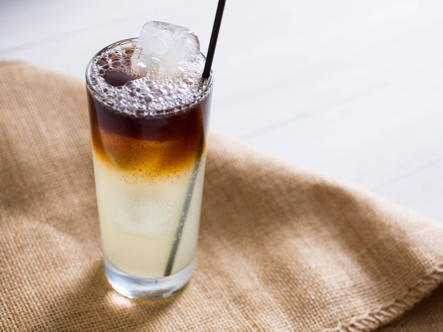 1. Long Island Iced Tea. Равные части джина, текилы, водки, светлого рома и апельсинового ликера смешать в бокале «хайбол», выжать сок четвертинки лимона, добавить 3 части кока-колы. Получится напиток светло-коричневого цвета. Согласно легенде, такой «чаек» подавали в подпольных питейных во времена американского Сухого закона.
