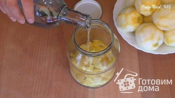 очистить овощным ножом тонкую кожицу цедры лимона, чтобы готового сырья получилось 2/3 литровой банки;