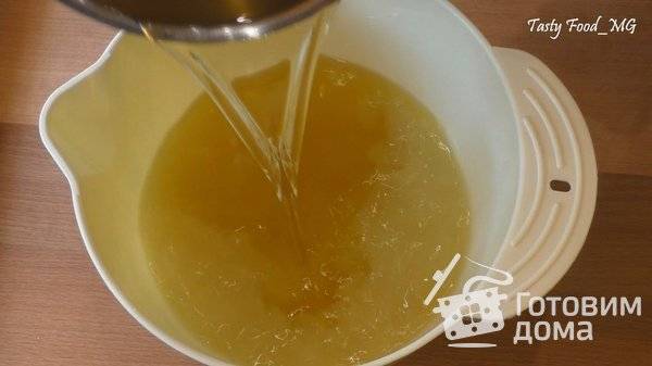 • в остуженный состав добавить 50 г пчелиного меда, лучше липового, вкус которого прекрасно сочетается с ароматом цитрусовых фруктов;