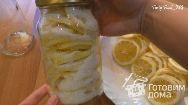 Закрыть банку с лимонами в сахаре крышкой и отправить на хранение в холодильник.