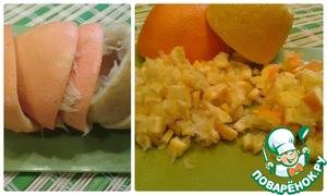 Шкурки цитрусовых измельчить удобным для Вас способом. Я это сделала при помощи ножа.