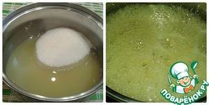 В полученную жидкость добавить сахар. Ставим на огонь. Помешивать до растворения сахара, чтобы он не пригорел. После того как масса закипела, варим 15 минут при слабом кипении. Далеко не уходите, т. к. масса сильно пенится и поднимается.