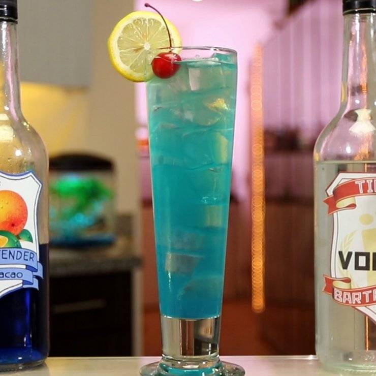Для приготовления коктейля «Электрик Айс Ти» используется Блю Кюрасао, а также лимонная содовая. Коктейль голубого цвета будет производить впечатление электрически заряженного при освещении ночного клуба.