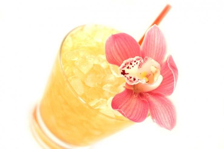 • для декоративного оформления готового коктейля рекомендуется использовать тонко нарезанные тропические фрукты, для романтического вечера подойдут лепестки цветов.