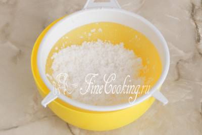 Процеживаем кокосовую водку через сито так, чтобы отделить стружку от алкоголя. Очень хорошо отжимаем стружку, чтобы она осталась практически сухой.