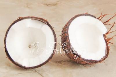 Теперь нужно расколоть орех. Для этого острым концом молотка стучим по окружности ореха. У меня трещина пошла после второго удара, правда, делал это муж. Только сильно не бейте, иначе кокос может разлететься по всей кухне. Раскрываем орех — перед нами обалденно ароматная, сочная и нежная мякоть. Иногда бывает, что внутри мякоть уже испорченная, то есть гнилая, но об этом вы узнаете, лишь когда раскроете кокос. С помощью ножа извлекаем мякоть, после того как под струей холодной воды еще раз промоем две половинки. Если расколоть орех аккуратно, у вас получится две красивые кокосовые пиалы.
