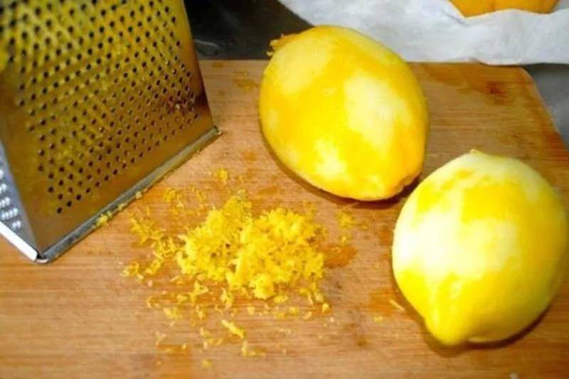 Общее количество лимонов 10 штук. С четырех штук аккуратно срезают теркой цедру