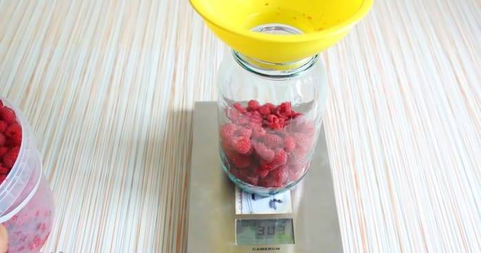 • малина (свежие или замороженные ягоды) – 1 литр (600-700 гр.)