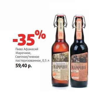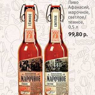 «Афанасий» – российская пивная марка, которая присутствует на рынке с 1994 года. Варится на мощностях ООО «Частная пивоварня «Афанасий», дистрибьюцию бренда осуществляет торговая компания NikitiN. Ассортиментный портфель содержит 11 сортов пива. Продукция экспортируется в страны СНГ, Литву, Эстонию. Основные продажи на внутреннем рынке приходятся на Москву, Санкт-Петербург, регионы Сибири и Краснодарского края.