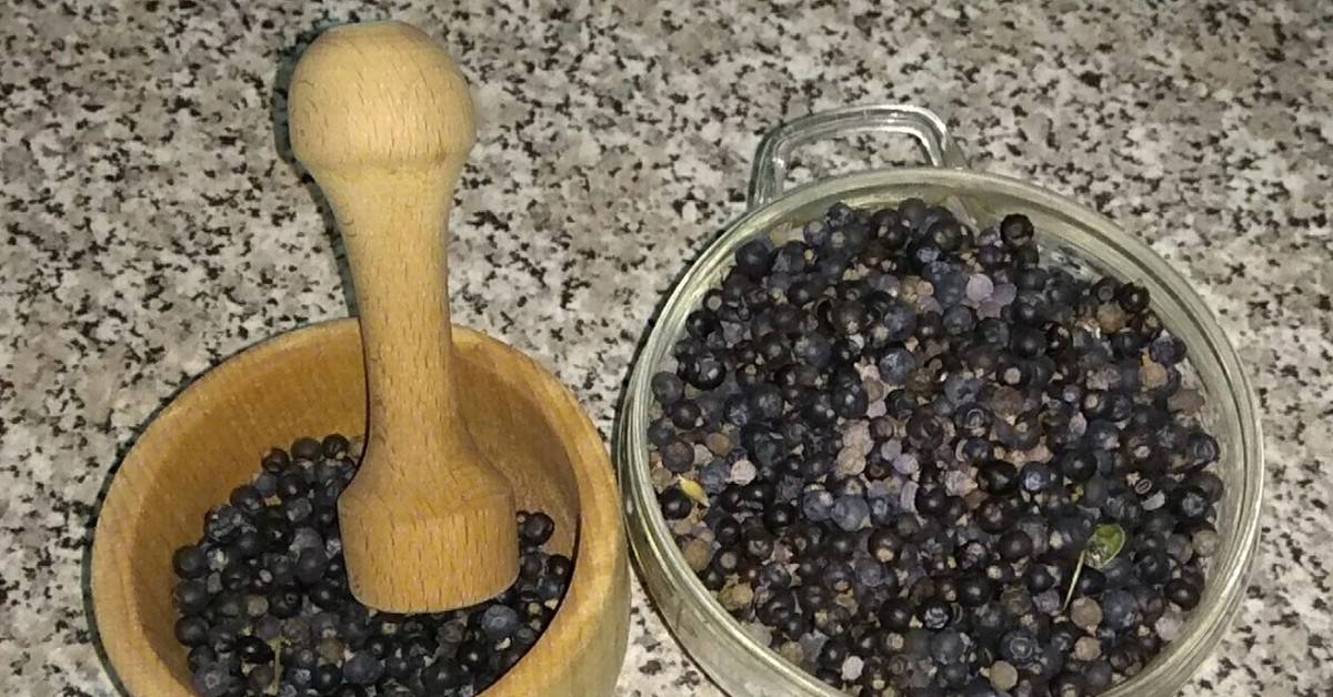 - Сушеный можжевельник раздавить в ступке.