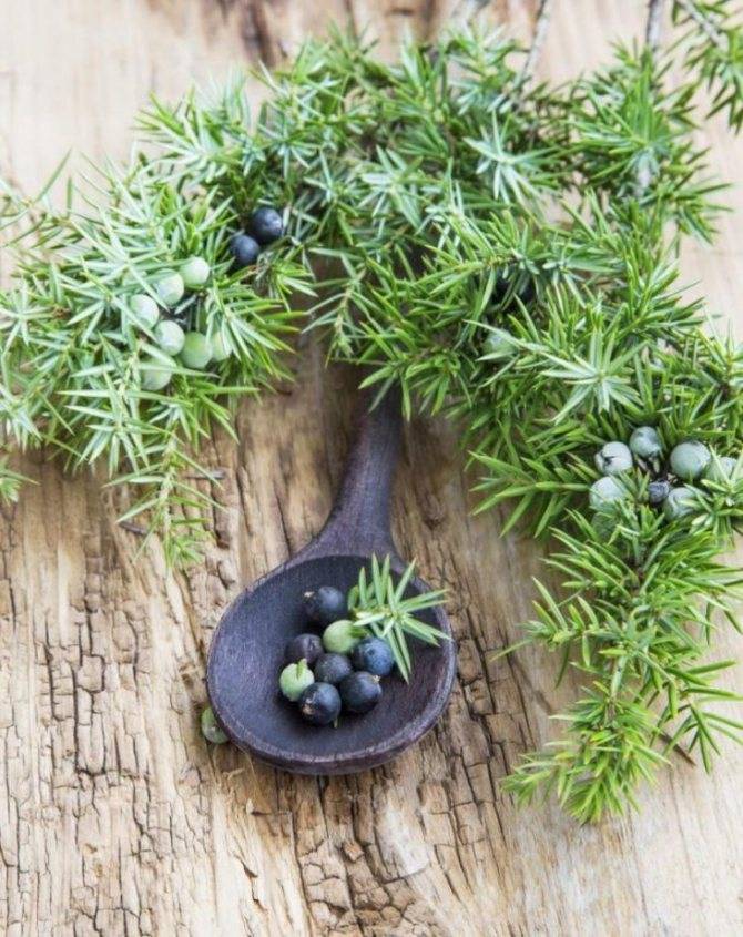 - Столовая ложка – штучек 10 – ягод можжевельника.