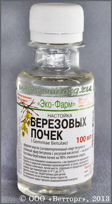 Если местные ванны невозможны, на пораженную зону тела кладут горячую примочку. В 500 мл воды добавляют 5 мл настойки, ткань смачивают в получившемся средстве и помещают на больной участок. После ванны или компресса возможно стягивание кожи, ощущение сухости. Чтобы этого избежать, закончив процедуру, необходимо на пораженную область наложить мазь из настойки и ланолина. Для ее приготовления следует смешать расплавленный ланолин и березовую водку; после застывания средства оставшуюся жидкость слить.