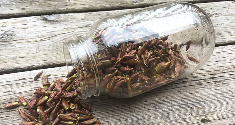 Но как правильно осуществлять сбор почек? Их необходимо срезать вместе с молодыми веточками. Срезанные веточки связываются в пучок и сушатся в сухом, проветриваемом помещении. Сушка должна длиться в течение 3−4 недель. Сухие почки издают приятный аромат, имеют коричневый цвет, легко обмолачиваются. Снимать их необходимо вручную или обмолачивать сухие веточки, очищая от сережек и листиков.